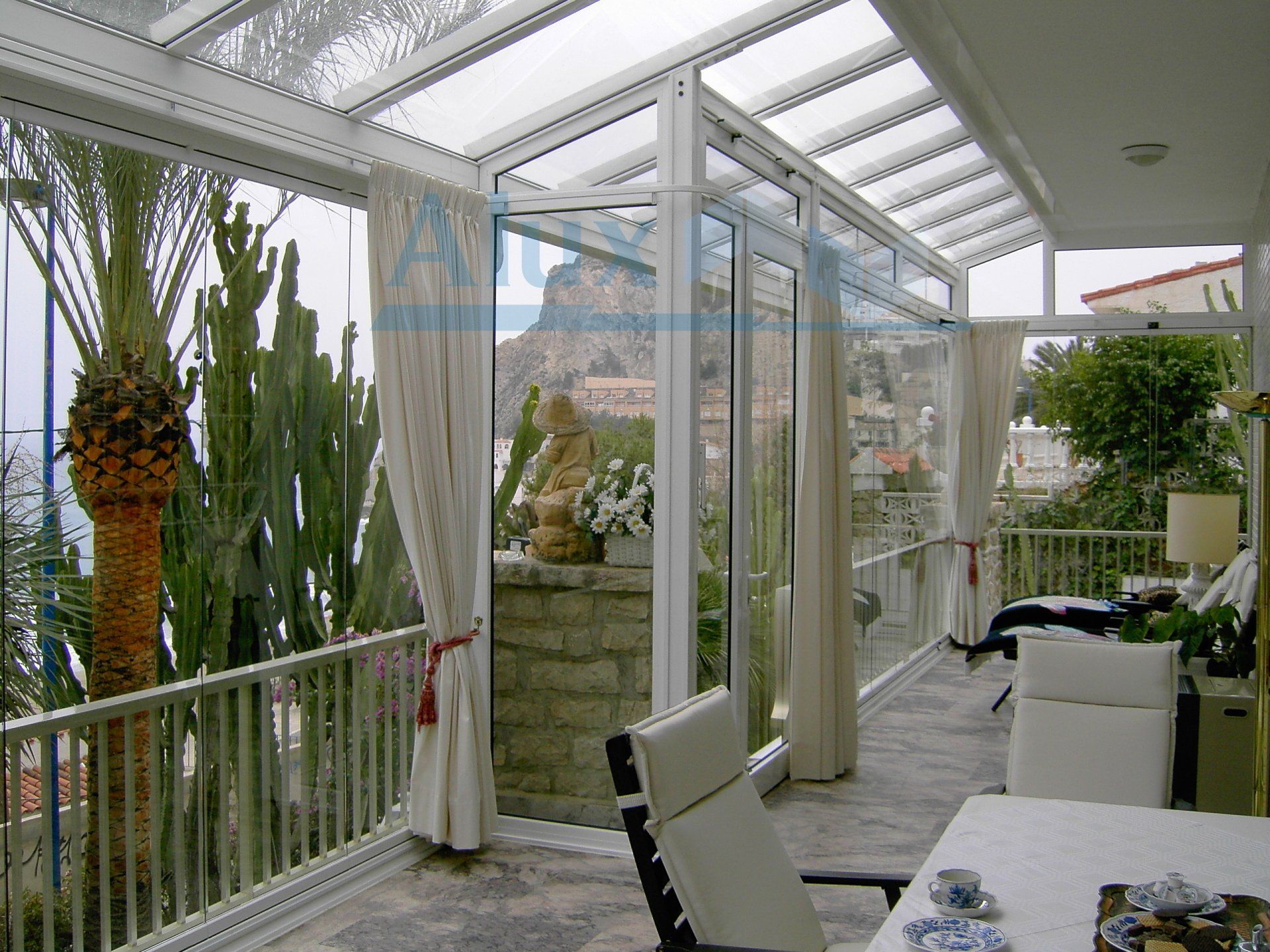 The roof of the terrace or porch - is a reliable protection against rain or other weather changes. Complemented by our vertical frameless glass curtain, it becomes a glass house that provides total protection.